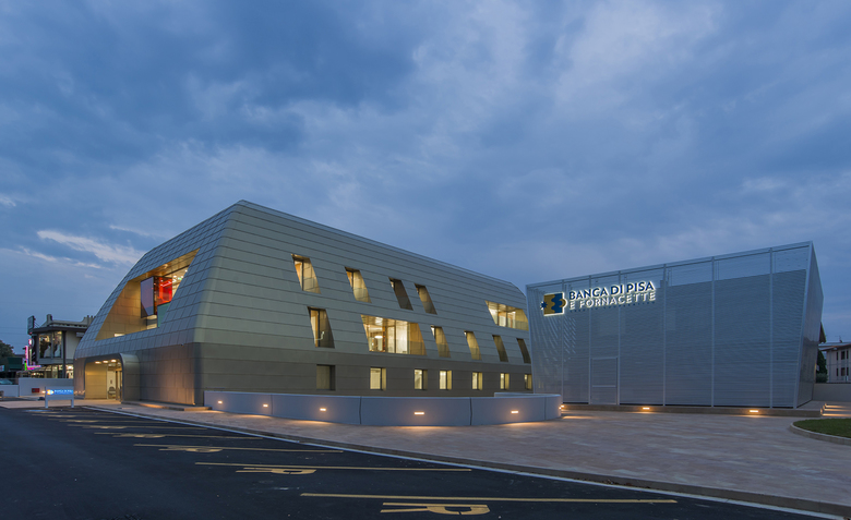 L’edificio realizzato è la nuova sede direzionale e amministrativa della Banca di Pisa e Fornacette e costituisce l’ultimo tassello di un più generale progetto di riqualificazione urbana, oltre che funzionale-operativa per la parte costruente, che vede sorgere, in prossimità della vecchia sede, un nuovo fabbricato, una piazza e nuovi spazi verdi aperti anche alla fruizione collettiva.