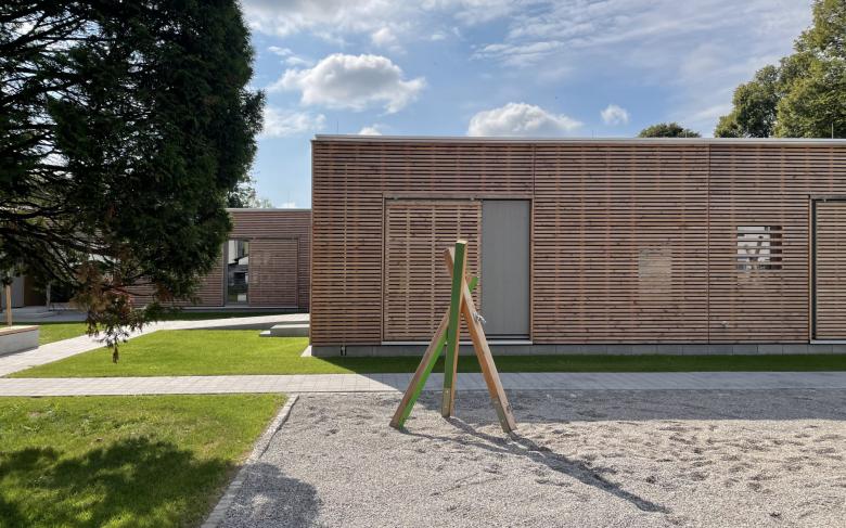 Holz ist als nachwachsender Rohstoff und aufgrund seiner schönen und angenehmen Oberfläche ein geeignetes und angemessenes Material für die Kita Edingen-Neckarhausen.
