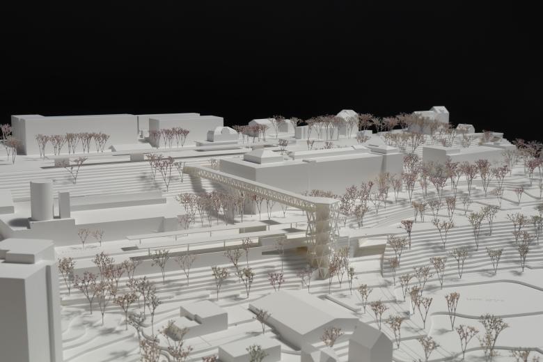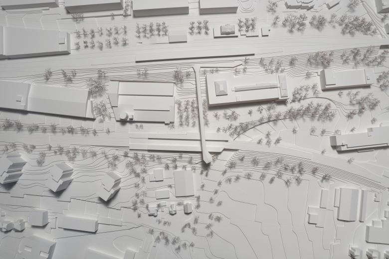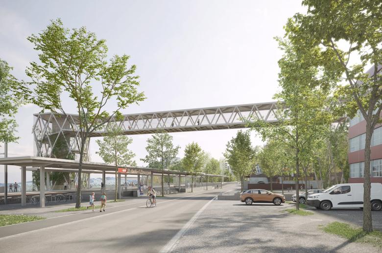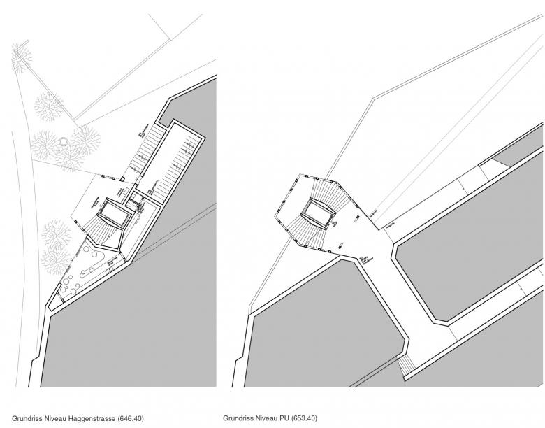 Das neue Verbindungsbauwerk ist das Portal zu zwei Bahnhöfen und bildet die Adresse des Quartiers Haggen am Fuss des Hügelzugs. Der Lift- und Treppenturm ist als identitätsstiftendes Zeichen weithin sichtbar. Im Norden liegt der grosszügig dimensionierte Dreiecksplatz, über den die Wegverbindungen an die nahe gelegene Bushaltestelle und ans Quartier Bruggen angeschlossen wird.