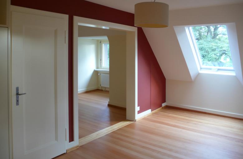 Durch den Umzug der Küche in die ehemalige Loggia Wird der Bezug des Wohnens zum Garten verstärkt. Dies wurde durch den Bau der neuen Gartentreppe im Frühling 2014 bereits vorbereitet. Davor, im Jahr 2007 durften wir den Dachstock ausbauen und bewohnbar machen, nachdem wir im Jahr 2000 aus die Garage ein Studio umwandelten.