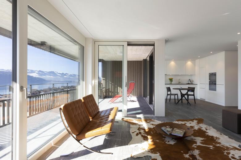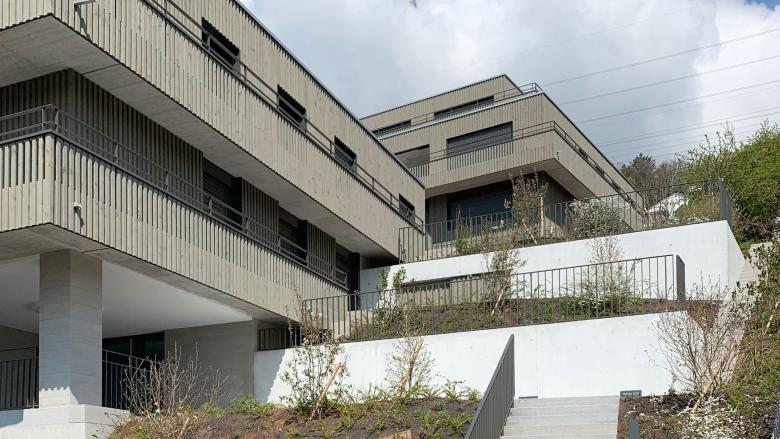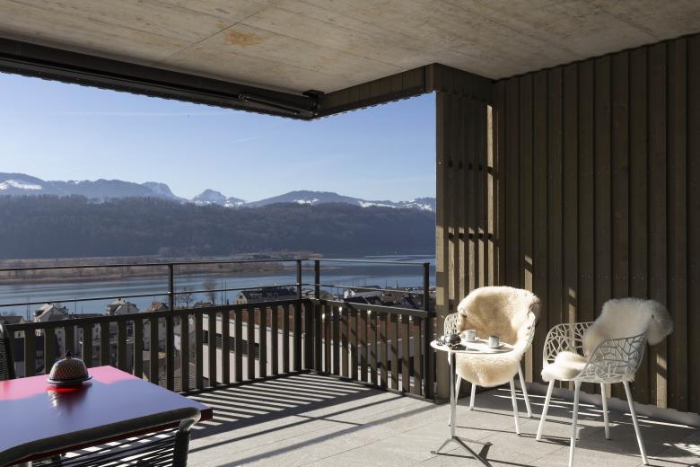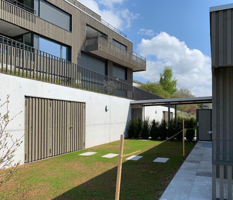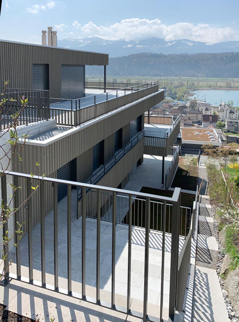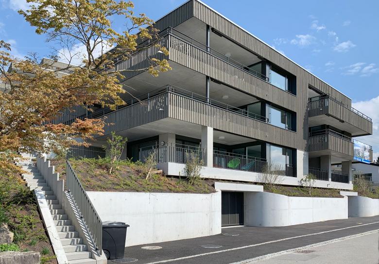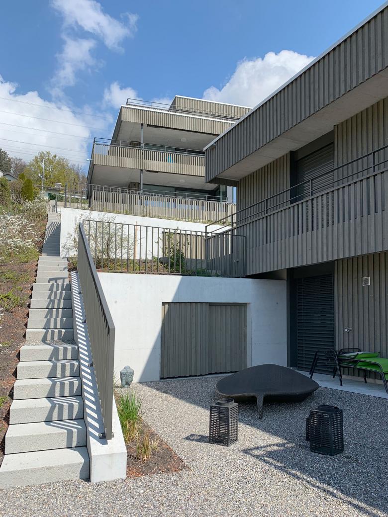 zwei Mehrfamilienhäuser einer Erbgemeinschaft. Die Hanglage mit einmaliger Sicht auf den Obersee verschaffte zwei grosse Vorteile: Aussicht und Gartenzugänlichkeit. Es entstanden eine Attika- und neun Gartenwohungen mit Aussichtsterrassen.