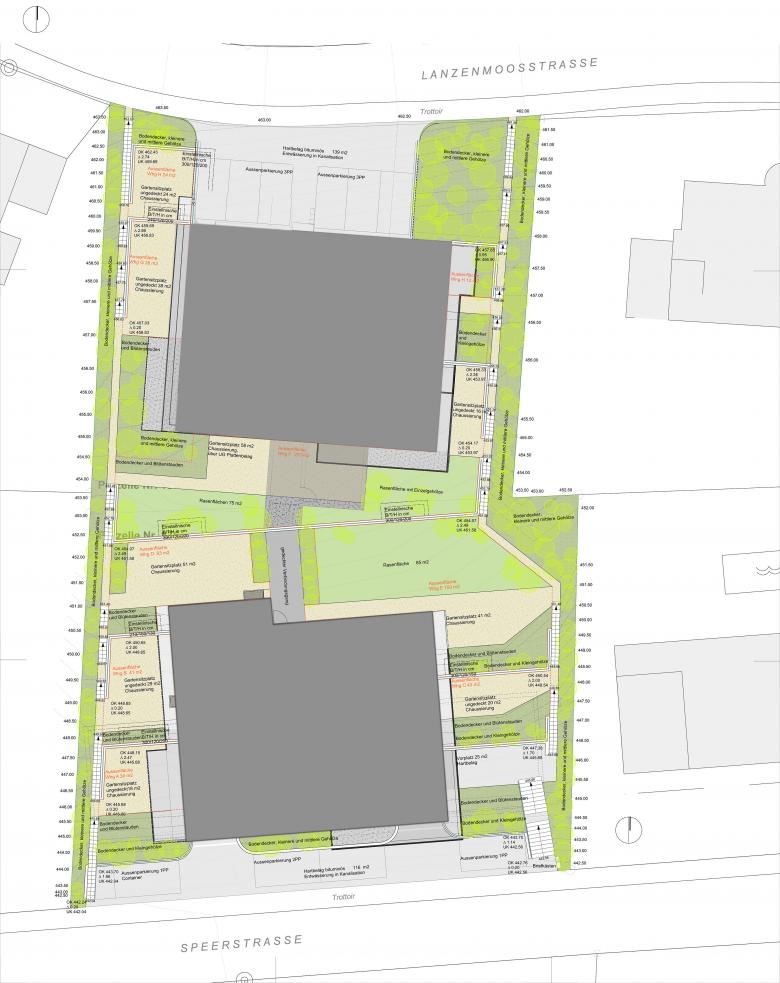 Da für alle Geschwister eine vorteilhafte Lösung gefunden werden soll, ist die Lage in der Ein- und Zweifamilienhaus-Zone W2 auf den ersten Blick nicht optimal. Das Ausloten der gesetzlichen Möglichkeiten zeigte dann jedoch, dass durchaus auch Mehrfamilienhäuser erstellt werden können.