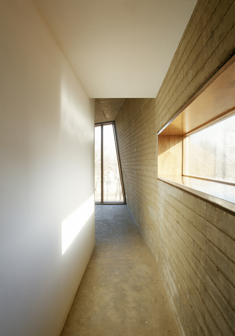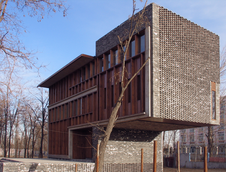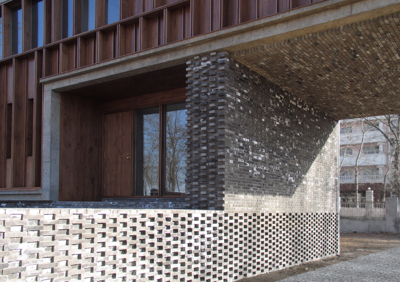 Mandates of circulation, drainage, and light provided an opportunity to invent new spatial and tectonic variations on traditional architectural problems. By calculating the necessary headroom for passageways, the necessary tread and riser relationship of the stairs, and the minimization of any other subsequent wasted adjacent space, the buildings are conceived as brick monoliths that have been shrink-wrapped or vacuum formed into shape. The techniques adopted for this design bear a critical relationship with what was possible with the given budget and economy in China. With labor being relatively inexpensive, it was possible to achieve a higher level of constructional complexity, yet with the high cost of materials, Office dA opted for the use of local gray brick and Chuzumu wood.