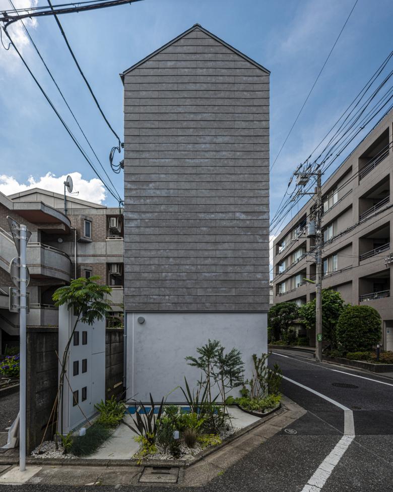東京都内中心部の住宅街に取り残された車を3台縦に並べる程度の細く長い敷地。ここに、6部屋の共同住宅を計画。