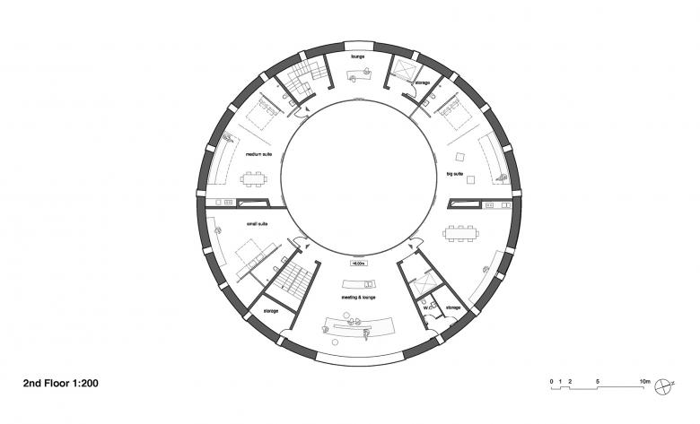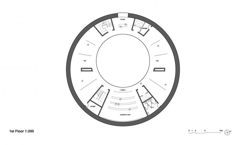 The design retains the original façade, removes the damaged timber structure inside and redesigns the inner courtyard into an eccentric circle. The depth of the new Tulou various, which is easy to meet the different needs of the art and cultural space. A number of curved new rammed earth walls, spread around the outer wall of the building, form the outdoor exhibition area. We kept the original floor height of Tulou, in order to retain its intimate scale.