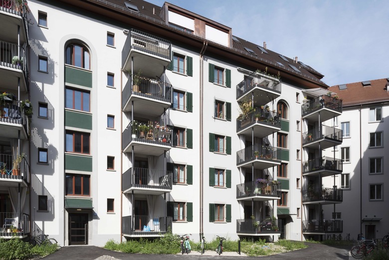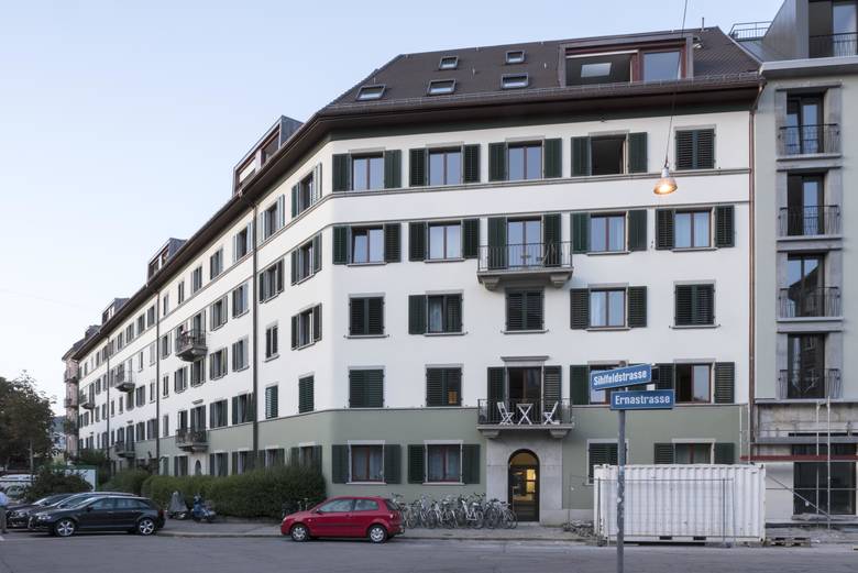 Umbau, Renovation und Aufstockung von neun Mehrfamilienhäusern in einem Blockrand aus den 1930ern auf dem Surberareal beim Hardplatz in Zürich. 90 bestehende Wohnungen wurden umgebaut und renoviert, 8 Maisonettewohnungen durch Aufstockung neu geschaffen.