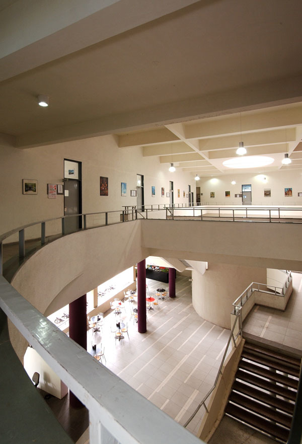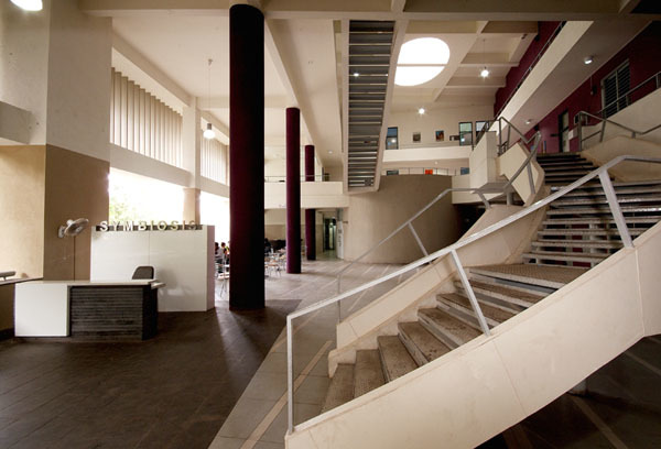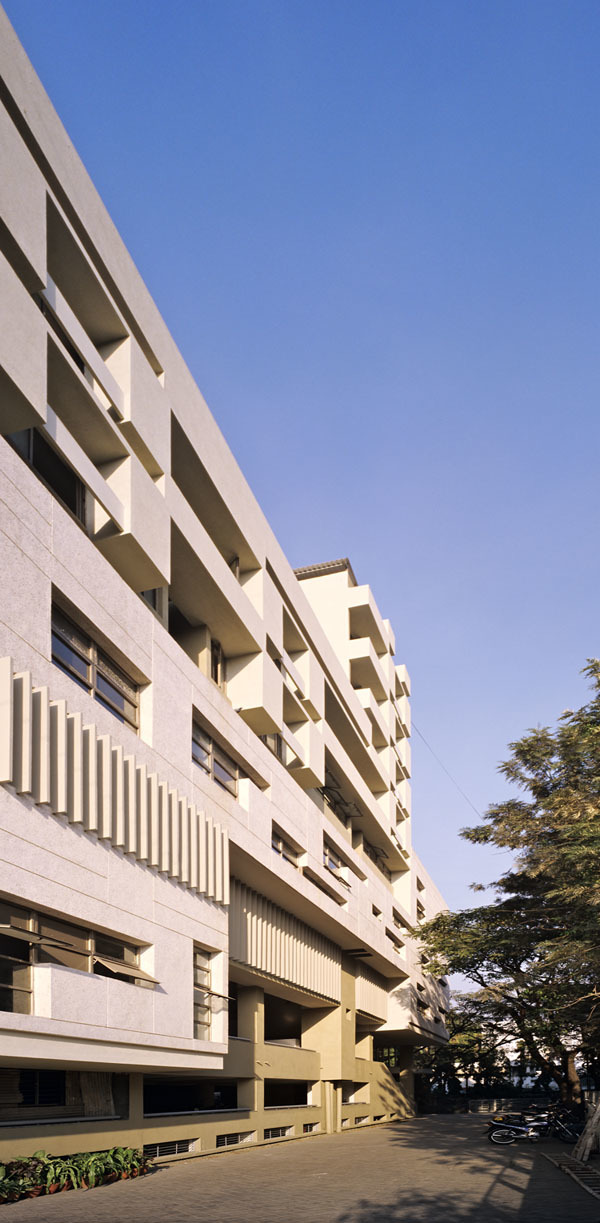 The highlight of this project is the complex handling of program and translating that into a meaningful architecture. The program had a Language School and Girls Hostel combined into a small plot of 20,000 sft. The project has two distinct functional needs, yet is able to accommodate each with ease on a very tight urban plot. To create the sense of an “urban campus” within a tight urban situation was the real challenge and to create a sense of “belonging to the ground” for the hostels even though they are located above a institute is the strength of the project. The project explores the idea of creating a campus like feel in a tight urban plot thru the use of public atrium/ podium spaces. These are reflected in the institute part as covered spaces while the hostel section makes use of open terraces to re-create the ground plane at an elevated level. The project has abstracted the program into the generative units of the 3 person shared hostel room and the 30 seater classroom. The program is layered in section with the hostel rooms sitting on top while the classrooms are below. A Service Floor separates the two programs. The project has successfully separated the two circulations of the two diverse programs to make both of them work well within one building.