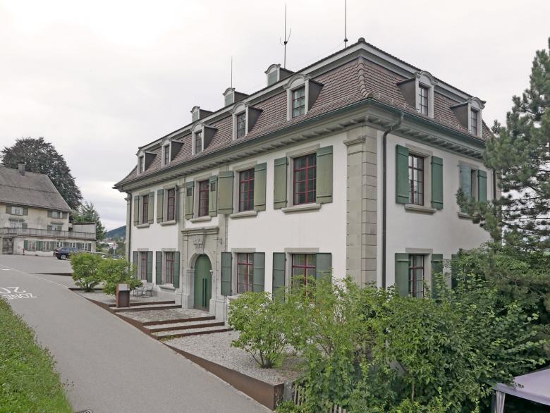 Das unter Denkmalschutz stehende, einstige Zeughaus wurde durch die neuen Besitzer sorgfältig renoviert. Die Umgebung des Zeughauses sollte den Ansprüchen des Denkmalschutzes entsprechen, zugleich aber durch eine zeitgemässe Gestaltungssprache die Verbindung in die Gegenwart herstellen. Die repräsentative Fläche beim Eingang wurde durch Stahlbänder gefasst und terrassiert. Ein mit antikem Kopfsteinpflaster belegter Platz mit indirekter Beleuchtung bildet den Hauptzugangsbereich. Zwei grosszügige Abtreppungen führen jeweils zu einer erhöhten und einer tieferliegenden Kiesfläche mit Strauchpflanzungen. Auf Wunsch der Bauherrschaft wurden Briefkasten und Gegensprechanlage in der gleichen Gestaltungssprache gehalten und ebenfalls mit einem Stahlgehäuse ausgestattet. Eine feinere Abtreppung mit Stahlbändern flankiert auch die Zufahrt zur modern gehaltenen Garage auf der Westseite des Zeughauses. Der Anbau schmiegt sich, mit einem feinen verspielten grünen Schleier aus Kletterpflanzen, harmonisch an den Hauptbau an.