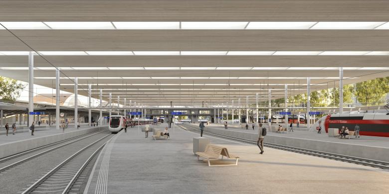 Das Projekt wird in zwei Ausbauschritten umgesetzt. Dabei wird das flexibel erweiterbare Dach, das einen grosszügigen, hallenartigen Raum definiert, zum Zeichen einer klaren Vision und konsistenter Entwicklung des gesamten Bahnhofskomplex.