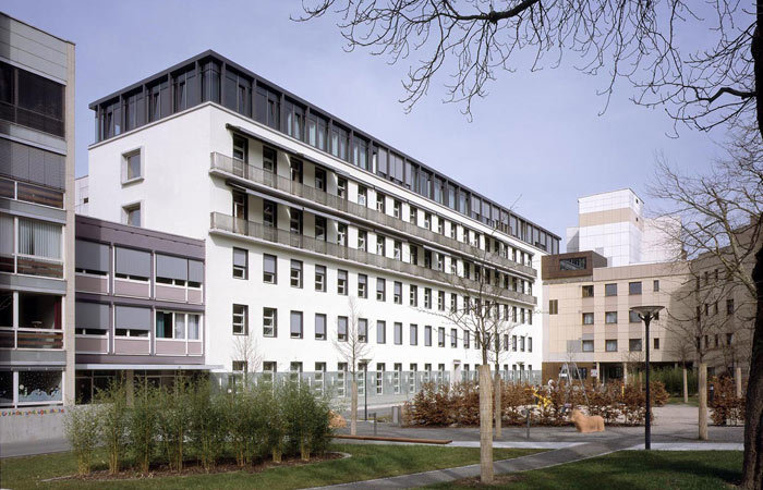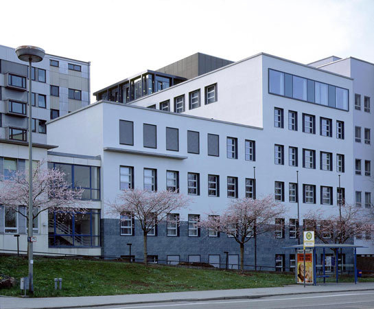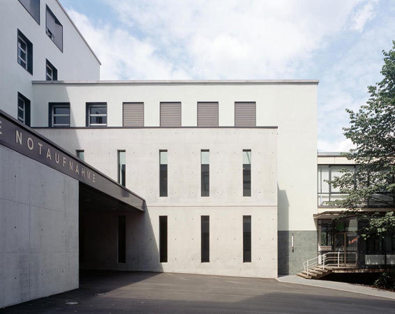 Das Bestandsgebäude des ehemals städtischen Klinikums, errichtet in den Kriegsjahren 1943 – 1945, sticht im Gesamtensemble der Klinikbauten als markantes Bauwerk hervor. Der Entwurf geht von einer Stärkung des Baukörpers aus, er gleicht sich nicht seiner Umgebung an, sondern akzentuiert den Ort, er stiftet Identität an dem ansonsten armen Gebäudeensemble.
