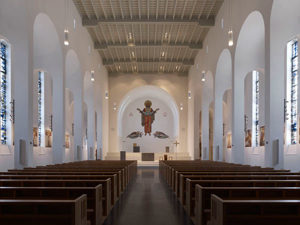 Der Sakralraum wird durch die Erneuerung der Materialien und die Reduktion auf seine klare Form geschärft und in seiner Erhabenheit erlebbar. Die hinzugefügten Elemente ergänzen den Innenraum in zurückhaltender Form und geben so dem Erleben des Mysteriums würdevoll Raum. Durch die neue Eingangssituation wird das Zusammenkommen und die Kommunikation der Gemeindemitglieder gestärkt.