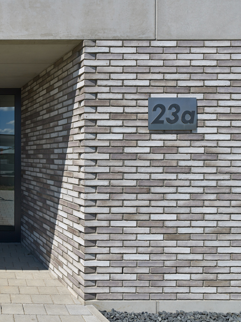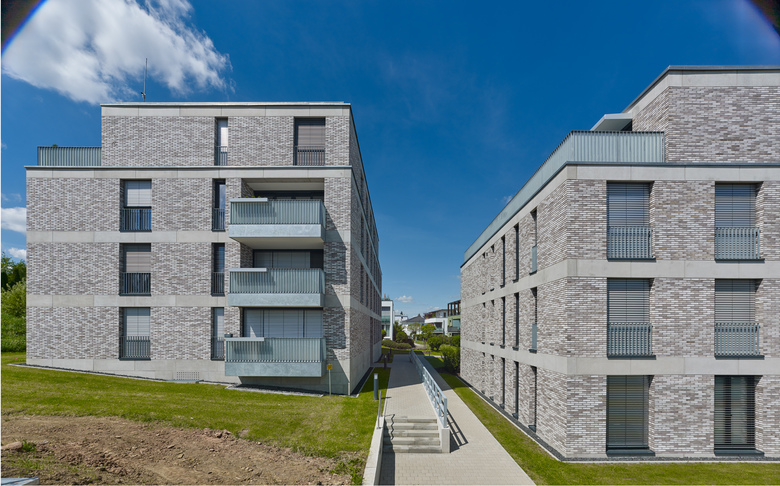 In prominenter Wohnlage Pforzheims sind die beiden Mehrfamilienhäuser angrenzend an vier Stadtvillen errichtet. Die orthogonal zueinander gesetzten Gebäude bilden ein Entree zur Postwiesenstraße. Über die städtebauliche Öffnung gelingt die Verflechtung mit den angrenzenden Punkthäusern. In einem heterogenen städtebaulichen Umfeld bilden die beiden puristischen Gebäude mit ihrer Gestaltungs- und Materialkonsequenz einen Ruhepol. Die Grundrisstypologie folgt den restriktiven Vorgaben der Wohnbaugesellschaften, gleichwohl definieren sie mit französischen Fenstern, einer größeren Raumhöhe und einer Erschließung mittels Diele einen höheren Wohnstandard. Das Material und seine Fügung sind von guter handwerklicher Qualität, das darüber hinaus dem Aspekt der Nachhaltigkeit Rechnung trägt.