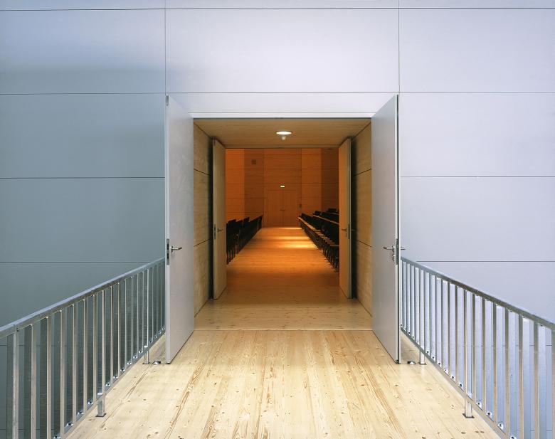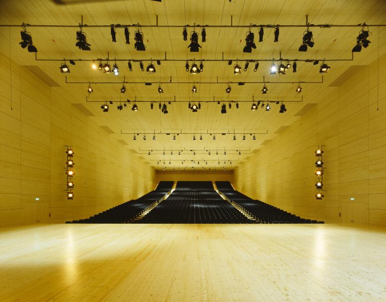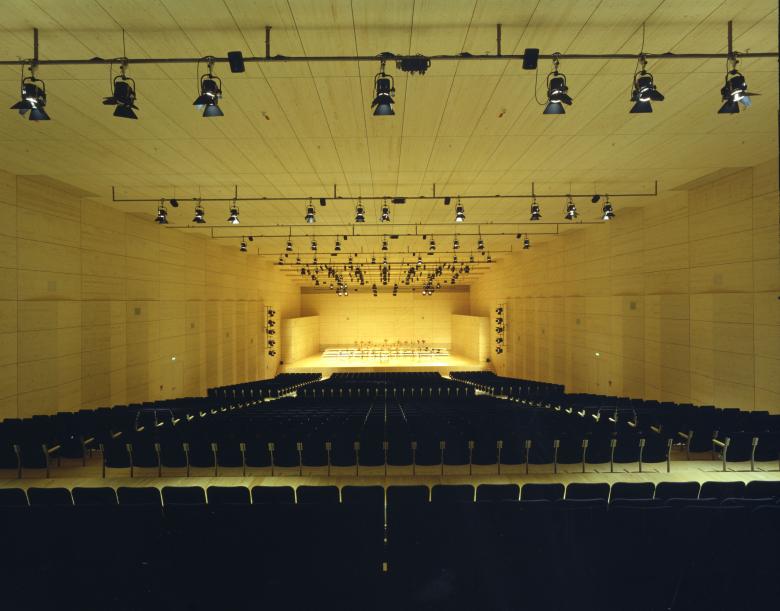 Um diese Kriterien zu erfüllen wurde der Konzertsaal als „Schuhkarton“ konzipiert und nach dem Prinzip „Haus im Haus“ in eine bestehende Messehalle gestellt. Die Wand- und Deckenkonstruktion bestand aus einem herkömmlichen Fassadengerüst, das innen und außen mit Holzpaneelen verkleidet wurde. Die naturbelassenen Oberflächen im Inneren erzeugen eine warme Atmosphäre trotz der großen Dimension des Raumes und seiner reduzierten Gestaltung.