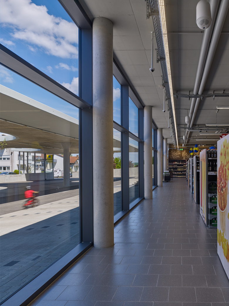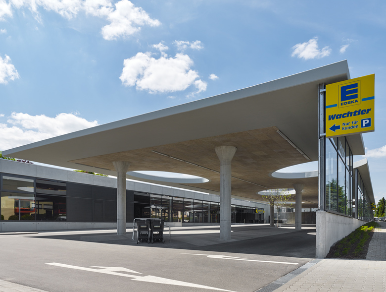 In einer bedeutenden Wohnlage Pforzheims wird der fußläufigen Nahversorgung mit einem Verbrauchermarkt Rechnung getragen. Das städtebauliche Konzept sieht einen erdüberdeckten Bau vor. Die vorgelagerten Stellplätze sind mit einem auf acht Stützen ruhenden Dach und einer Glasmembran zur Erschließungsstraße eingefasst. Der direkt angrenzende Landschaftsraum wird auf dem Dach des Gebäudes fortgeführt. Die technischen Anlagen sind dort in einer dünenhaften Landschaft integriert. Zwischen den seitlich angrenzenden Wohnbauten entsteht so eine Freifläche. Ein Verbrauchermarkt – ein Gebäude ohne nennenswerte Fassade, wird geschickt in die Topographie und das städtebauliche Umfeld integriert.