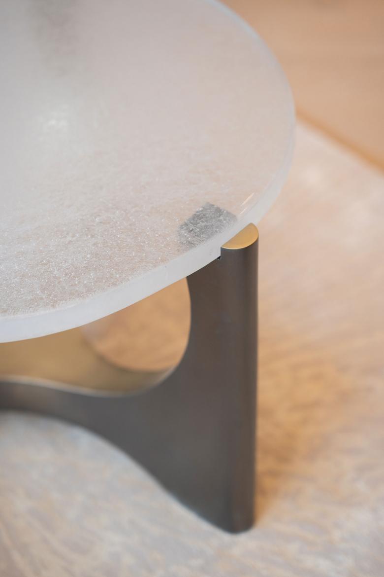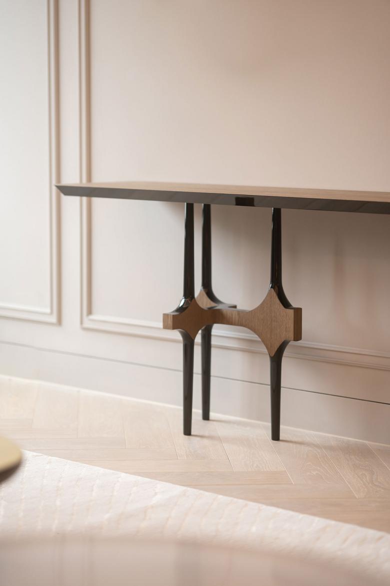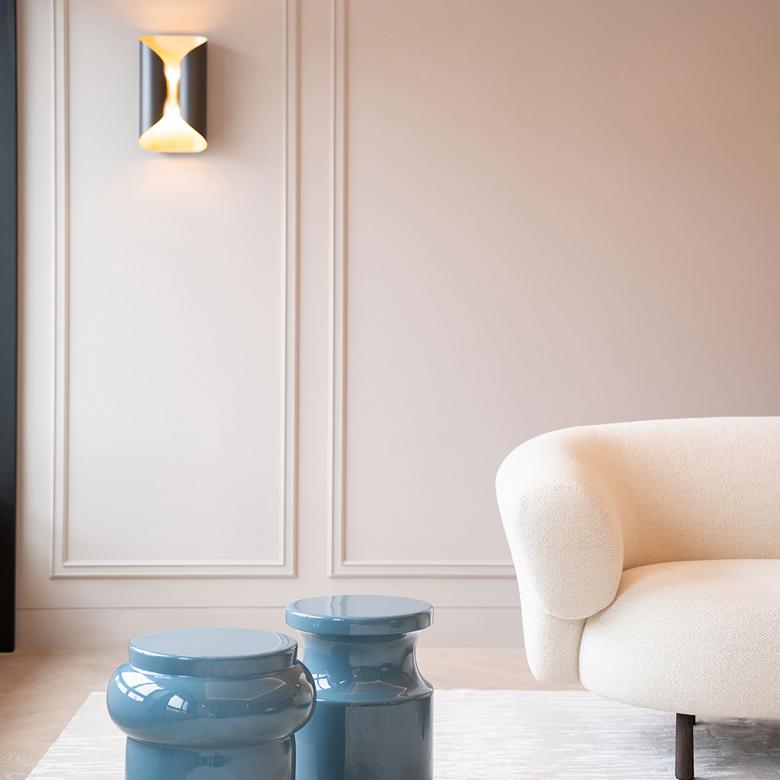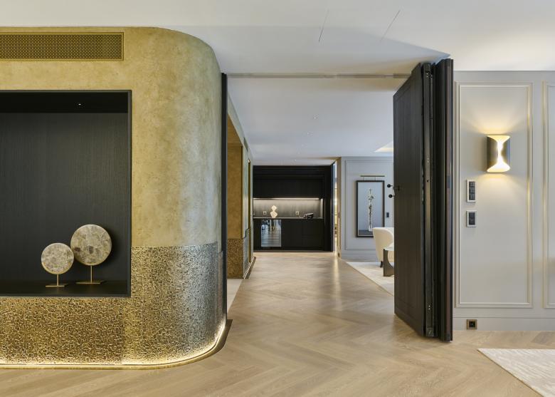 This suite unites the work of a creative collective: At the heart is the cube, which is enclosed in a golden, handcrafted cladding that blends with the golden spattle surface to create a harmonious work of art. The central cube has clever spatial solutions and also serves as a sculptural work of art.