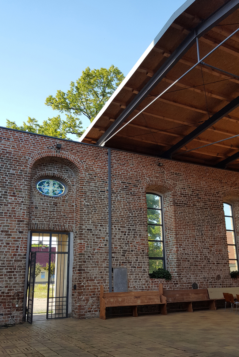 2004 wurde die Sakristei wieder aufgebaut und ein neues Kirchendach als Teilüberdachung errichtet.