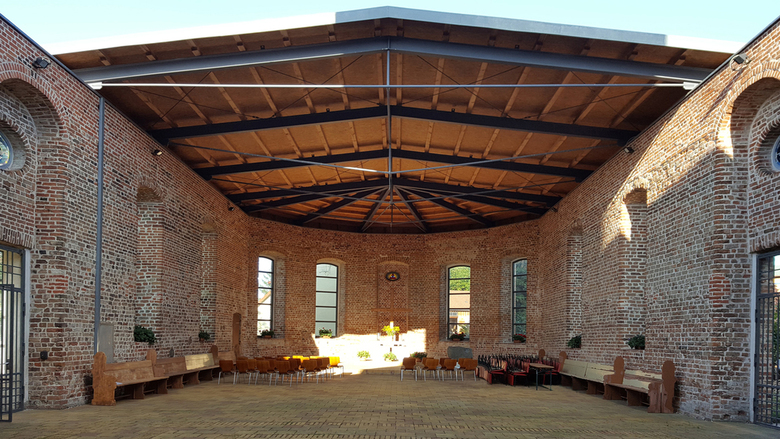 In Planung befindet sich derzeit der Abschluss des Kirchensaals durch eine transparente Fassade mit Gestaltungselement.
