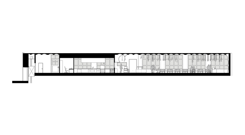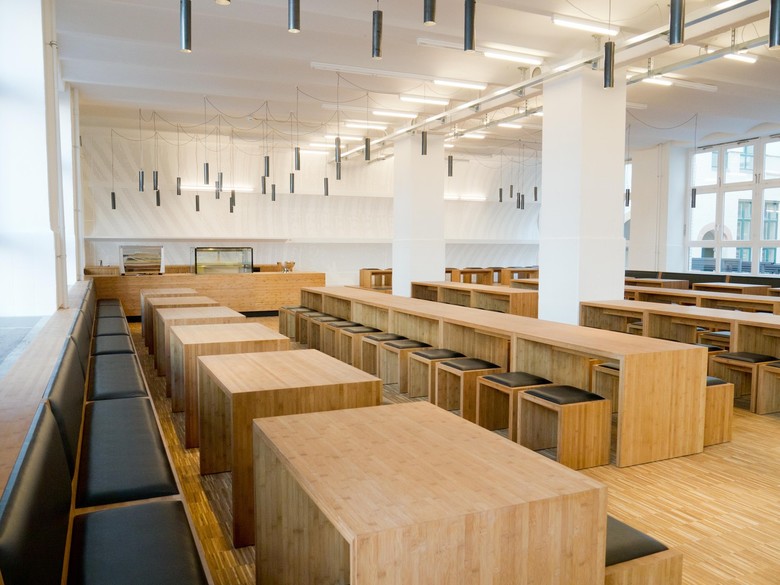 Raststätte is a restaurant project, initiated and operated by the VIA Werkstätten group in the southern Berlin bourough of Tempelhof. The restaurant consists of a large open seating area, café and kitchen with support spaces for handling staff training and catering. Elements of the existing space such as the brick vaulting and its historical identity (the birthplace of the vacuum-tube post) inspire layout and material use throughout.