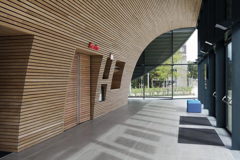 The other main objective was sustainability. The design split the building into three climatic zones: the foyer and theatre, study space and café. The foyer and theatre is the only area that is completely mechanically climatised, using the plant located on the ground floor. Meanwhile, the other two areas can be heated in the winter months and cooled in summer through the building's natural ventilation system.