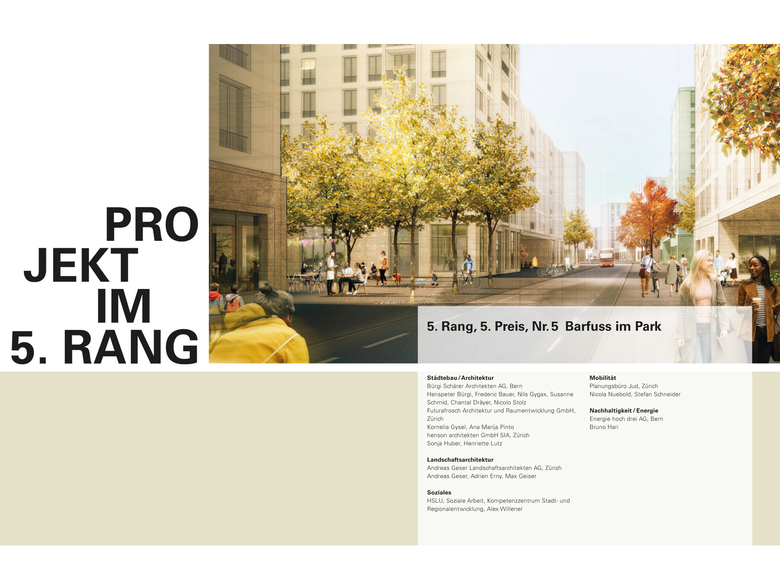 Bern lebt in den Quartieren. Das Viererfeld ist gelebte Nachbarschaft, ein Quartier in vertrauter Qualität und mit eigener Identität. Boulevard und Park, die beiden öffentlichen Primärelemente, bilden räumliche Gegensätze und nutzungsbezogene Ergänzungen, schaffen Orte der Begegnung und Aneignung. Klar definierte Grenzen und subtile Übergänge zwischen Öffentlichkeit und Privatheit lassen spezifische Gebäude entstehen und (Spiel-)Raum für ein vielfältiges Quartierleben.