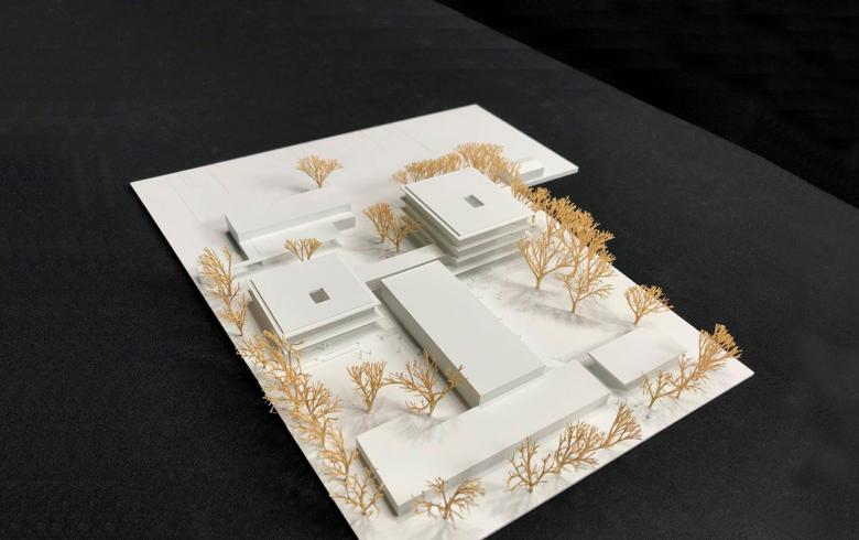 Ein Ziel des Entwurf ist es, für die Werner-von-Siemens-Schule, die aus Grund- und Werkrealschule besteht, die „passende“ städtebauliche Form und Position zwischen Wohnhochhäusern, dem Sportgelände mit der Sporthalle, den angrenzenden kleinteiligen Wohnhäusern und dem wertvollen, erhaltenswerten Baumbestand zu finden.