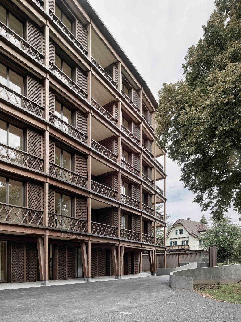 Das in Holz gehaltene Wohngebäude ist im Zusammenspiel mit den naheliegenden Ökonomiegebäuden zu verstehen. Es entsteht dadurch ein Lebensraum, welcher als Schnittmenge gelesen werden kann zwischen dem klösterlichen Bereich und dem Wohnquartier des Wesemlins. Das Gebäude ergänzt atmosphärisch die Klosteranlage, so dass das Klosterareal mit seinen Gebäuden, Aussenräumen, Gärten und Bäumen erhalten bleibt und durch die Schaffung von Wohnraum das Kloster nicht konkurrenziert wird.