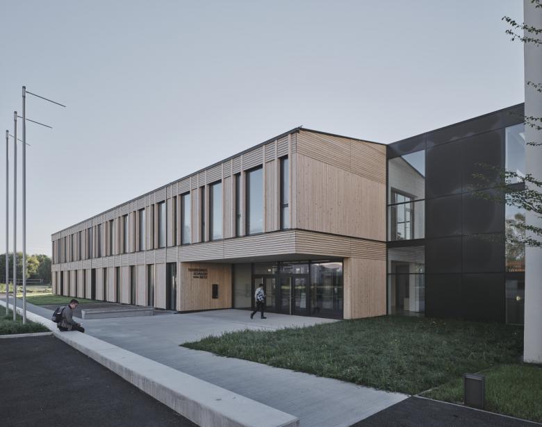 Situation löst die Eingangssituation auf Straßenniveau, dadurch wird städtebaulich ein Ensemble mit der NMS gebildet, die in Retz ein neues Stadtviertel, einen Bildungscampus entstehen lässt. Die Beibehaltung des Charakters
