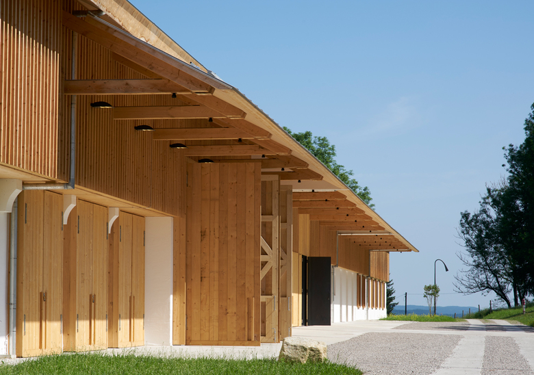 Als Architektur wählte Florian Nagler Architekten eine Holzkonstruktion, die sich an die traditionelle Bauweise der Region anlehnt, jedoch nicht volkstümlich ist. Das Beleuchtungskonzept unterstreicht diesen Gestaltungsansatz: Alle Leuchten sind minimalistisch gehaltene Archetypen, die sich dezent in das Ambiente einfügen, ohne sich dabei zu verstecken. Mehr noch: die Lichttechnik ist auf der hellen Holzkonstruktion gut ablesbar.