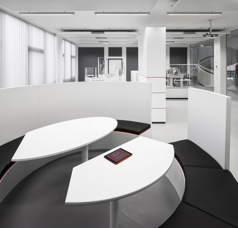 Der Bauplatz lag inmitten des Werkes Oberhausen, in unmittelbarer Nähe zur Hauptverwaltung. Durch ein Vorprojekt hatte MAN die Gebäudeform verbindlich als rechteckige Halle mit einer über Eck positionierten Rotunde vorgeschrieben. Es sollte ein vis-à-vis zum Rundbau des Verwaltungsfoyers entstehen. Diese Grundform galt es, architektonisch zeitgemäß und funktional umzusetzen und zusätzlich eine Ergänzungsmöglichkeit für eine Lehrwerkstatt zu schaffen.