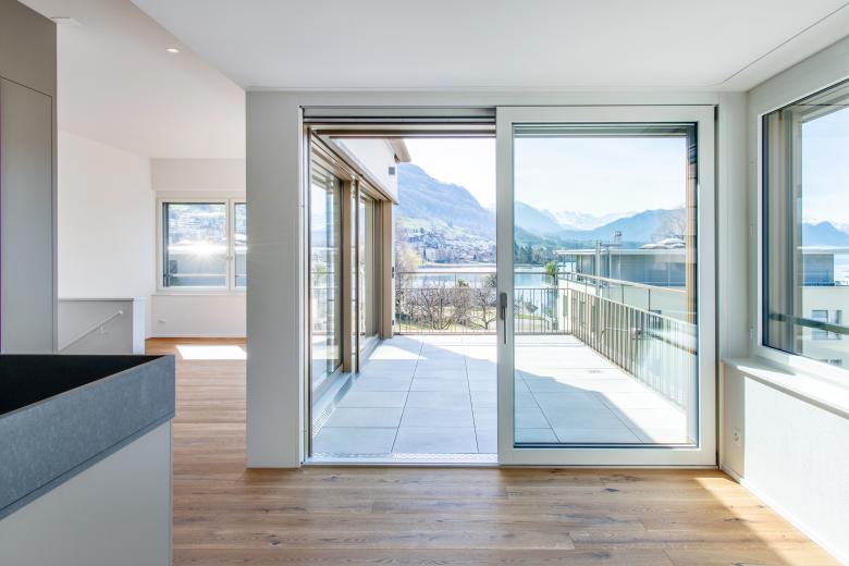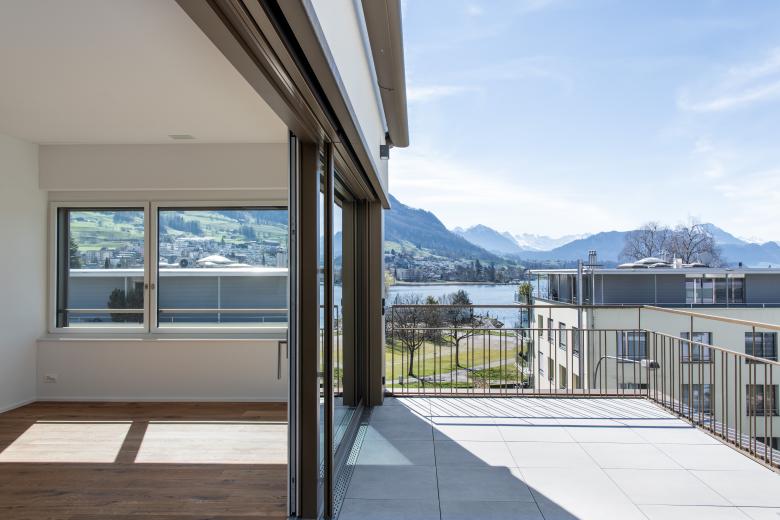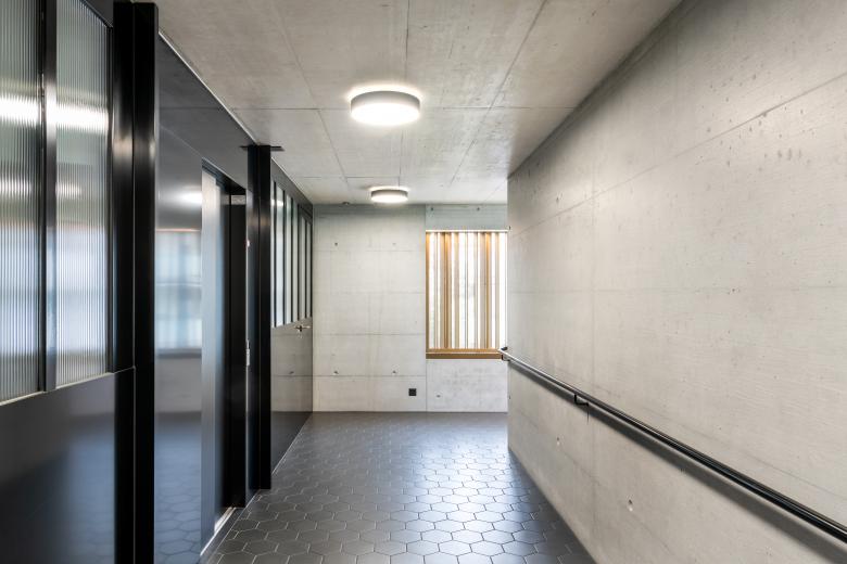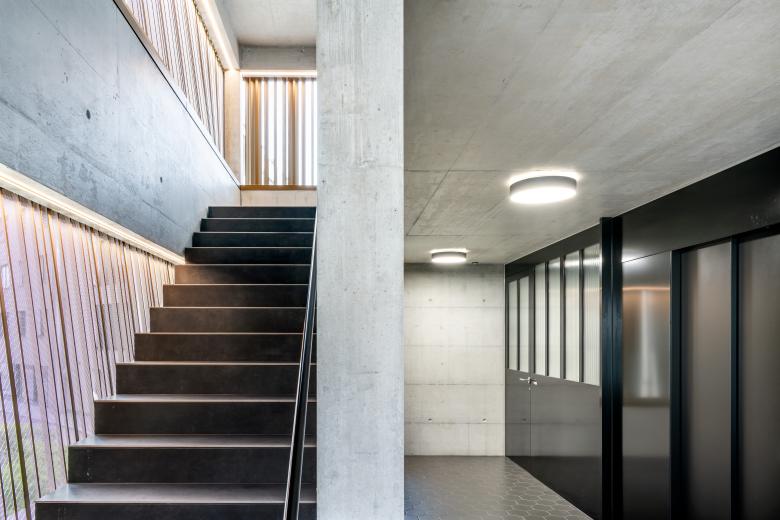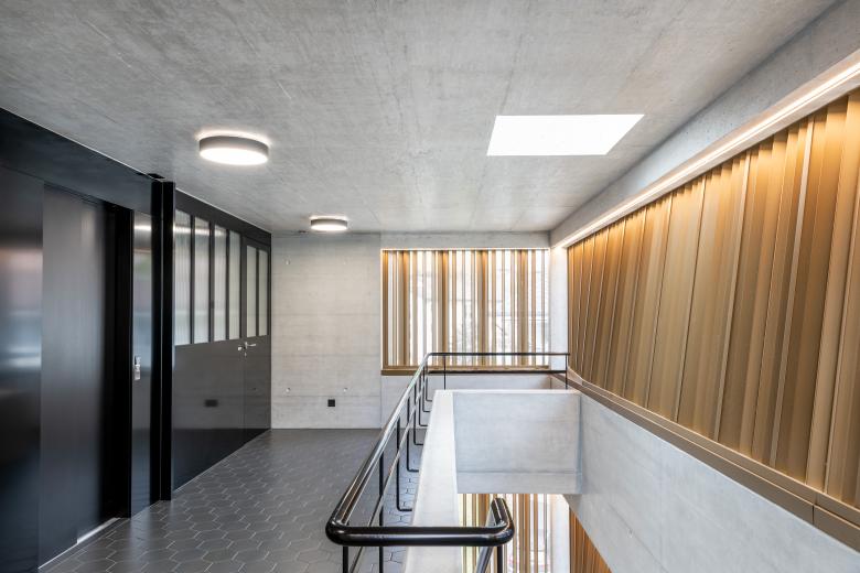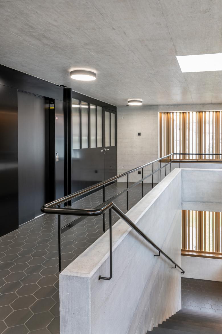 An zentrumsnaher Lage nahe des Bahnhofs und des historischen Küssnachter Ortskerns fügt sich der neue Baukörper schlüssig in die gewachsene Bebauungsstruktur entlang der Luzernerstrasse ein. Die flexibel bespielbare Gewerbenutzung im Erdgeschoss weist eine direkte, attraktive Anbindung an den Strassenraum auf. Der Hauszugang wie auch das aussenliegende Treppenhaus mit Lift befindet sich auf der strassenabgewandten Nordseite des Gebäudes. Erschlossen werden auf drei Obergeschossen und einen Attikageschoss total 6 Wohnungen, davon zwei attraktive Dachmaisonetten mit grossen Aussenterrassen und Seeblick. Das Gebäude weist eine sehr hochwertige Fassadenkonstruktion mit einer fein gegliederten Bänderung aus Putz- und Metallelementen auf. Die bronzefarbigen Metallteile werten die äussere Erscheinung des Gebäudes zusätzlich auf.