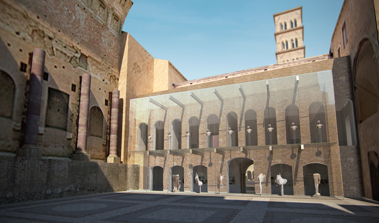The need to obtain new spaces in the museum to put on display the precious finds of ancient Rome, has made it necessary to expand the rooms of the former convent of the church of Santa Francesca Romana by adding a new glass volume.