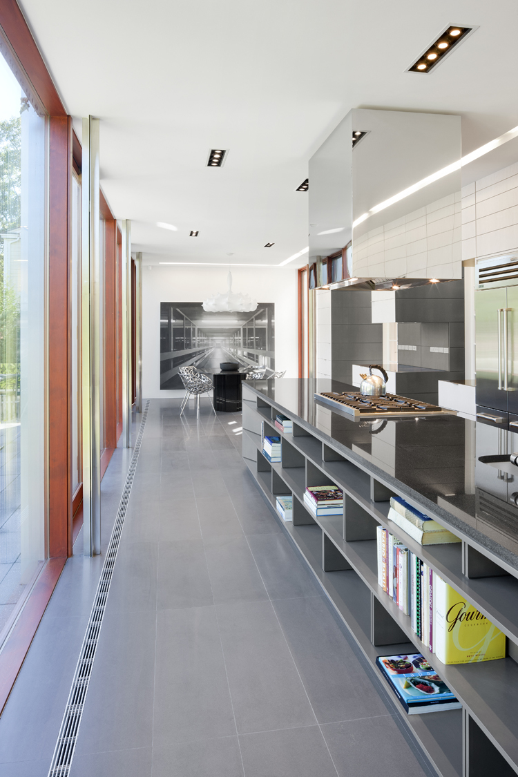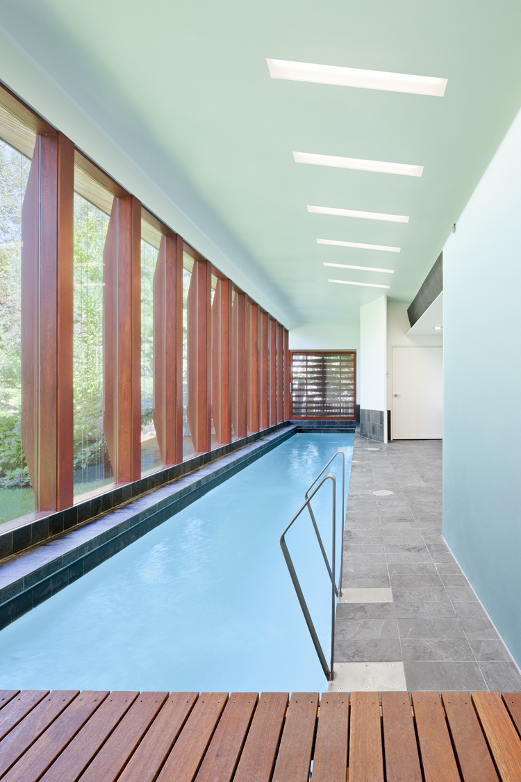 Located in a suburb of Boston, this house serves as a gathering point for a couple’s children and many grandchildren. The addition and pool house develop a dialogue with the existing gardens, allowing the owners to engage the outdoors all year, and creating a series of filters and frames through which the landscape is viewed.
