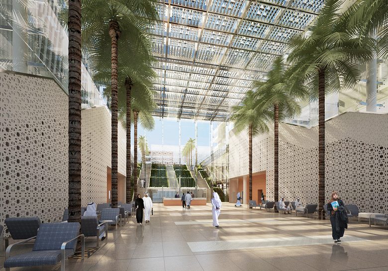 Sheikh Khalifa Medical City is a 3-million-square-foot medical complex in the heart of Abu Dhabi. Conceived of as three hospitals under one roof, the 850-bed complex combines a general hospital, women’s hospital, and pediatric hospital. Envisioned as a "city within a city," the design defies the typical model of a medical center and creates a bustling campus-like environment of distinct character and vibrant public spaces engaged with its community. Informed by historical regional precedents, the design seeks to strike a balance as a state-of-the-art vision rooted in local heritage. The design responds to, and is respectful of, the unique culture of the UAE and its demanding desert climate.