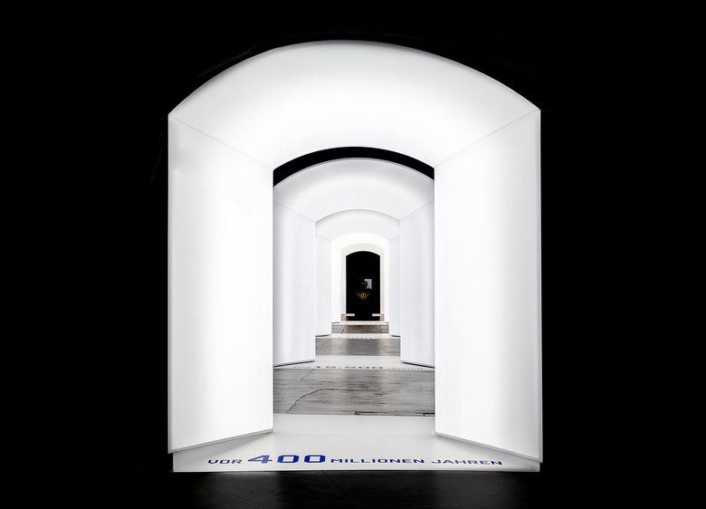 Beispielsweise wird der Zeittunnel von einer, für die vorhandene Architektur der Festung Ehrenbreitstein passenderen, Lichtinstallation abgelöst. Die Zeitschleusen sind hinterleuchtete Stoffelemente, die eine Aneinanderreihung der streng aufeinanderfolgenden Themenräume der Kasematten im gleichmäßigen Takt unterbrechen. In der zentralen Sichtachse formen sie sich optisch zu einem Tunnel, der die Ausstellung verbindet und ebenfalls im Sinne der Zeitreise, die Besucher in sich hinein zieht.