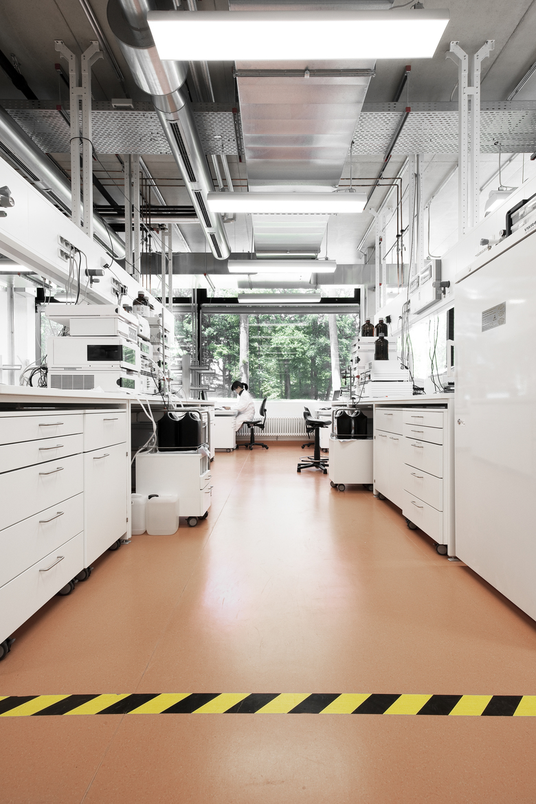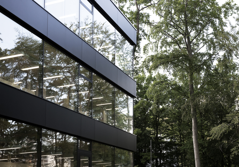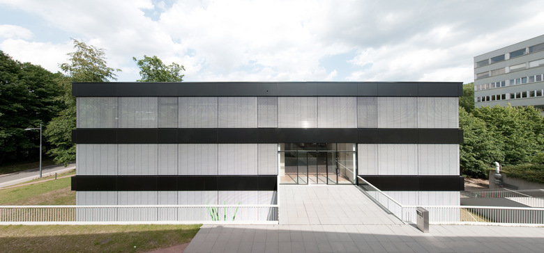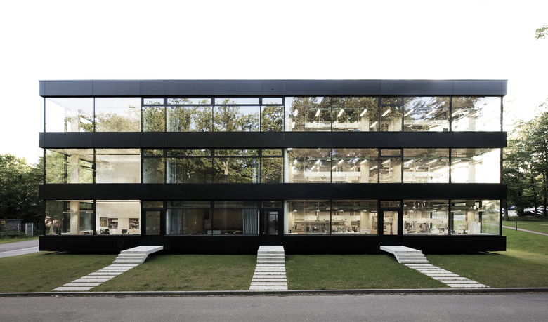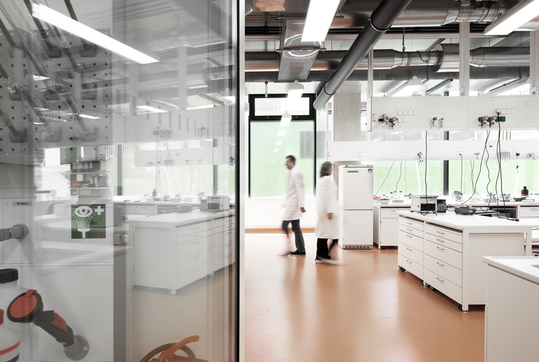 Das Forschungsgebäude für die Pharmazie wird auf dem Campusgelände der Universität des Saarlandes in Saarbrücken als 3-geschossiger Solitär errichtet. Mit seiner Gebäudehöhe orientiert sich der Neubau am bestehenden Institutgebäude für Pharmazie. Dem Raumprogramm folgend wird jeder Nutzungseinheit, also jedem Institut und den Nachwuchsgruppen jeweils ein Geschoß zugeordnet. Die Grundrisse gliedern sich in vier von Westen nach Osten verlaufende Nutzungsschienen die im Wechsel mit Erschließungsbändern die Geschoßflächen zonieren. An den Nutzungsschienen bilden sich zwischen den Stützen Bereiche die als Schrank- und Installationsraum genutzt werden sollen. Drei Lufträume durchschneiden die so entstehenden flexibel nutzbaren Geschoßflächen und belichten auch innenliegende Bereiche. Durch die konsequente Zonierung der Grundrißstruktur in Erschließungs-, Versorgungs- und Nutzflächen, kann sich das Gebäude allen nachträglichen Nutzungsänderungen und -verschiebungen anpassen.