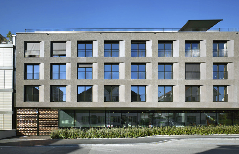 Der Neubau an der Redingstrasse 43 in Basel umfasst 18 genossenschaftliche Wohnungen und eine Einstellhalle mit ca. 50 Einstellhallenplätze. Hofseitige ist ein grosszügiger Garten als Spiel- und Erholungsfläche geplant.