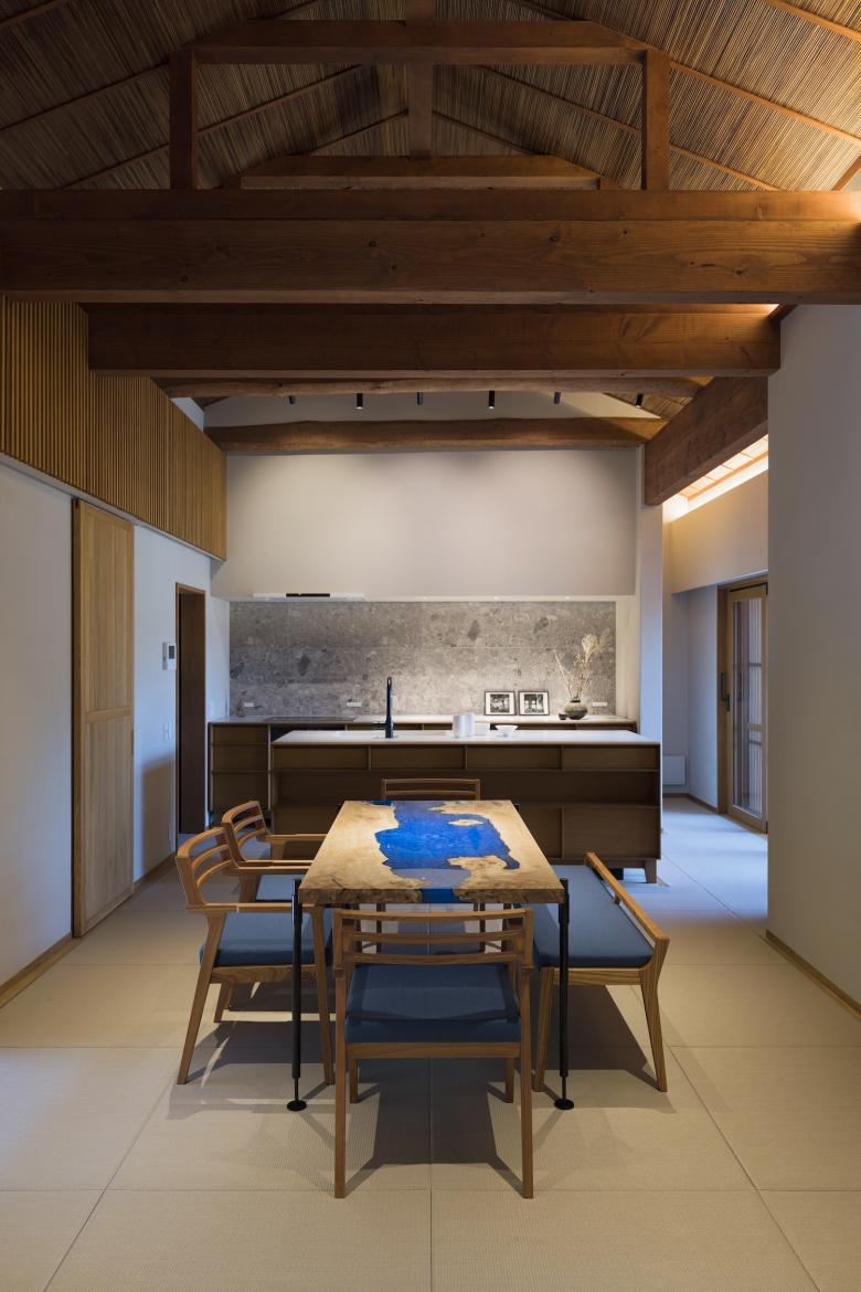 「心も身体もリフレッシュしながら趣味に没頭できる別荘を」という要望に応えた上で、自然に寄り添うロー・インパクトな計画であることも、このプロジェクトの大きな特徴といえる。土の掘削量を減らし、既存の民家を改修して活用、建材に地元産の杉を使用し、太陽熱給湯や自然採光・通風を活用し、高効率焼却炉による敷地内ゴミ処理で廃棄物の排出を抑える取り組みをしている。