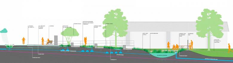 A winning entry in Atlanta’s Green Infrastructure Design Challenge, MLK Living Lab combines resilient, educational, and social strategies into a vibrant public space. The design centers on stormwater capture solutions that are legible and serve a pedagogical and economic function for students and local residents of this underserved community. Partnering with Spelman College and the West Atlanta Watershed Alliance (WAWA), Starr Whitehouse will integrate the site into existing educational and workforce training initiatives, such as classes in environmental science at Spelman, and vocational training at Atlanta CREW and the Green Infrastructure Resilience Institute. This strategy will not only posit the site as an education and economic engine for the community, it will also give the City access to maintenance support and performance metrics funded through existing community initiatives. Placing community involvement at the fore of the project, Starr Whitehouse will facilitate and implement feedback at every stage to ensure productive and ongoing use of the space, crafting protective elements that enhance the neighborhood that they defend.