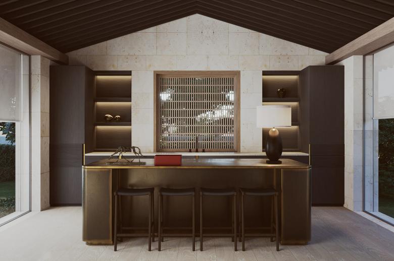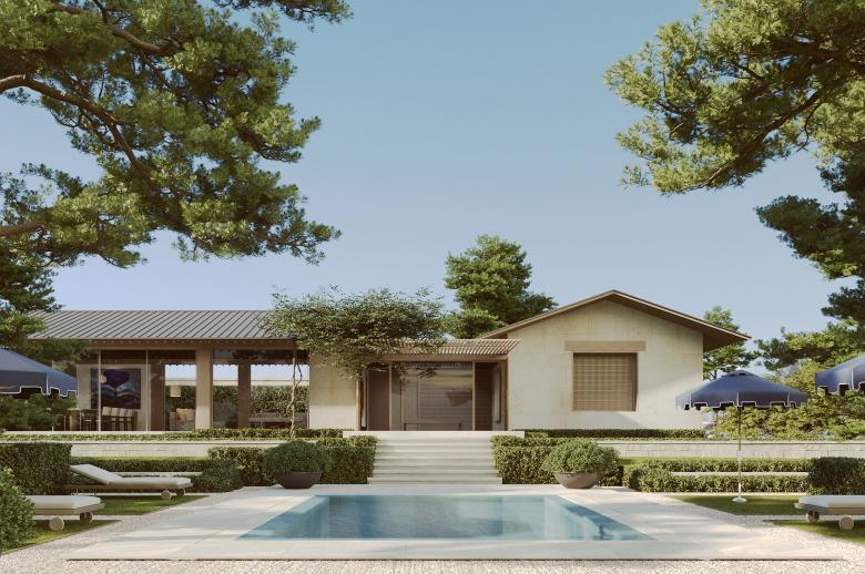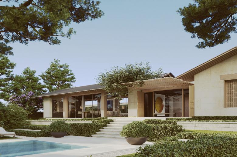 Der reduzierte Materialkanon – Stein, Beton, Holz – schafft eine zeitlose Atmosphäre, in der Architektur und Landschaft zu einer Einheit verschmelzen. Innenräume öffnen sich mit großflächigen Verglasungen zur Natur, bleiben jedoch durch eine sorgfältige Zonierung stets intim.
