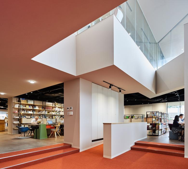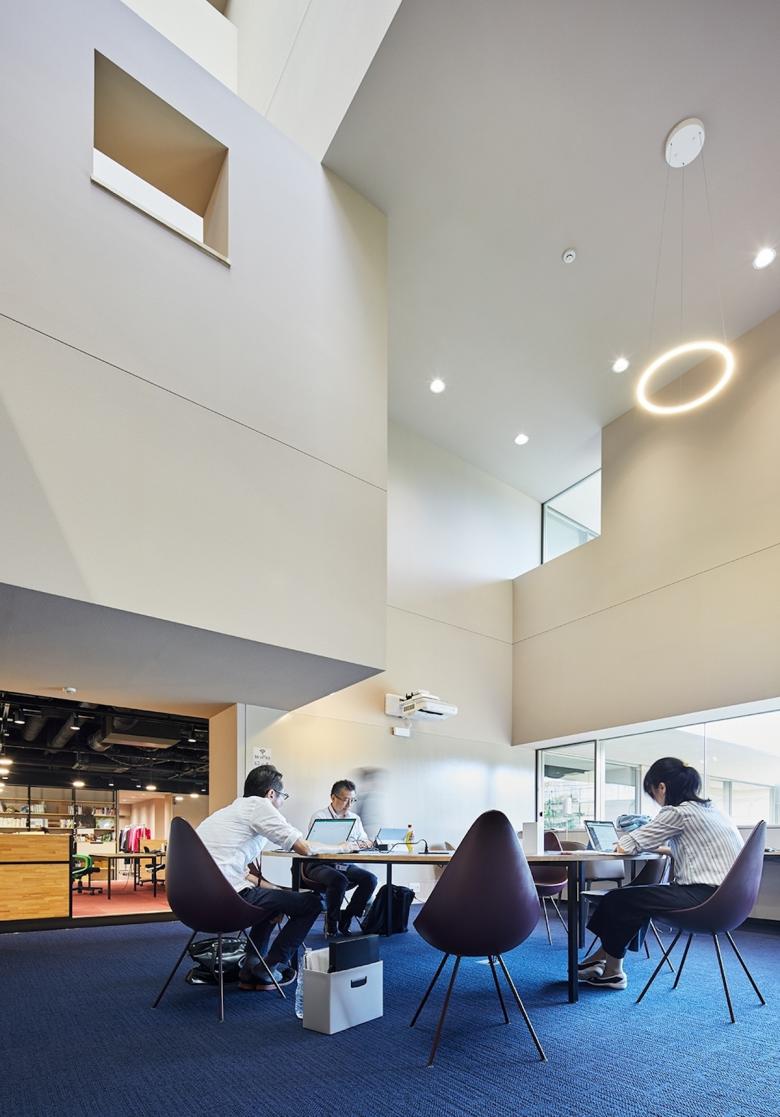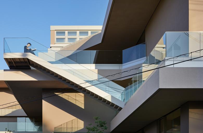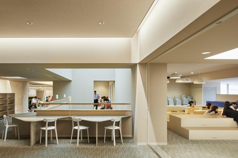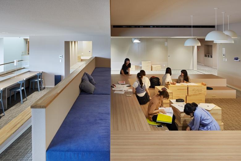 梅光学院大学新校舎「The Learning Station CROSSLIGHT」は、学生が世界で活躍できる人材となるべく、”考える力”“生きる力”が培われる場を目指している。山口県下関市のキャンパスは、襞状の複雑な地形に道路が入り組む、密集した市街地にある。学校や市体育館、住宅などさまざまな要素が周囲を囲んでいることから、新校舎はこれらの中心的な場となるよう、キャンパスと街との境界をなくし、建物へ多方向からアクセスできる出入口を持たせた。点在した立体ヴォイドによる動線や視線が複雑につながる三次元網目構造の概念によってつくられたアクティブラーニング空間は、学びの空間そのものが都市構造(社会の縮図)と連続し、まったく新しい学びのシーンをつくり出していく。