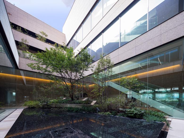 2・3階の南北両側に奥行き16mの無柱の約1,100㎡のオフィス、中央部分に2つの中庭を挟み込んだ空間構成である。従来のような閉じられたコアに階段やエレベーターを設けず、自然が感じられるコミュニケーションコアをつくり、低層を生かした2つのオープンな大階段と中央2基のシースルーエレベーターという最小限の垂直動線とした。また、中庭に面して、上下階をつなぐ半屋外空間とステップテラスと南北のオフィスを結ぶナレッジスペースを設け、社員が出会う頻度を高め、コミュニケーションの活性化を図っている。