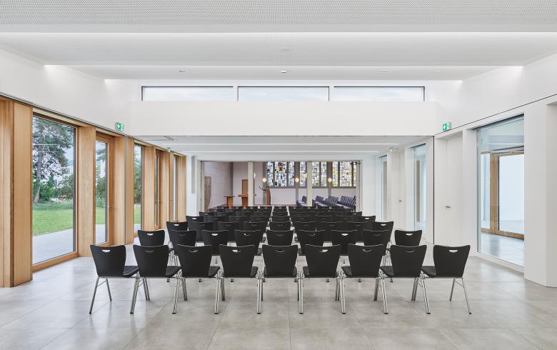 Das neue Gebäude mit Räumen für die Gemeindearbeit zeigt sich als räumliche Ergänzung, jedoch nicht in Konkurrenz zur bestehenden Kirche. Es entsteht ein offener Hof als Treffpunkt und Festplatz für die Kirchengemeinde. Der schöne, alte Baumbestand wird erhalten und das neue Gemeindehaus als ergänzendes Element in den „Johannespark“ integriert. Es entsteht eine Einheit aus Kirche, Gemeindehaus und großen Bäumen.