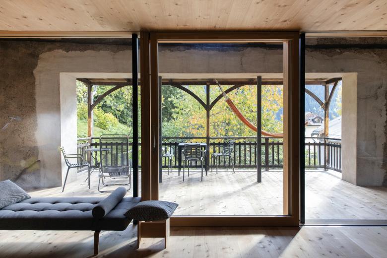 Der vielfältig nutzbare Raum, ein zusätzliches Badezimmer sowie die grosse Loggia gegen Süden ergänzen räumlich, was den Bewohnern bereits seit längerer Zeit in diesem zum Dorfplatz gerichteten historischen Wohnhaus fehlte.