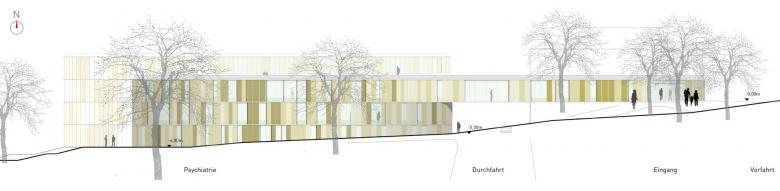 Die Psychiatrie umfasst 2 Pflegestationen, eine beschützte Station mit eigenem Dachgarten, Tageskliniken für Allgemeinpsychiatrie, Psychotherapie und Psychosomatik, ergotherapeutische Angebote sowie einen Bereich für Kinder- und Jugendpsychiatrie.