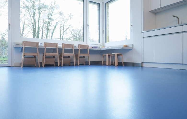 Der Kindergarten soll neu themenbezogen farblich abgegrenzt sein, deshalb wurde der allgemeine Bereich in einem Rotton, die Kindergartenräume in einem Gelbton und die Therapieräume mit einem Blauton geplant. Dank der grossen Farbpalette unseres NATUROLISS® Bodenbelages konnten wir die farbenfrohe Idee umsetzen und die Räumlichkeiten in eine spielerische und kreative Umgebung verwandeln. Für einen Kindergarten ist der NATUROLISS® Bodenbelag perfekt geeignet. Er besteht zum Grossteil aus natürlichen Materialien, weist eine angenehme Haptik auf und ist dennoch langlebig und darf durch Spiel und Spass der Kinder beansprucht werden. Zudem ist er durch seine fugenarme Ausführung auch im Unterhalt komfortabel.
