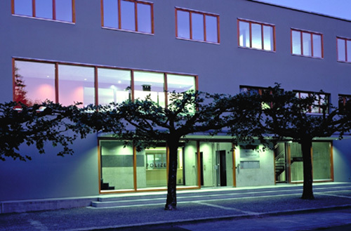 Vorgabe war ein sehr kostengünstiges Gebäude zu erstellen. Die innere Struktur ist deshalb trotz der sehr unterschiedlichen Nutzungsanforderungen klar und wirtschaftlich: entlang der Poststrasse entwickelt sich die schmalere Schicht mit den Eingangshallen, Treppenhäusern, Sanitär- und Nebenräumen, - entlang der Gleise, mit niedrigerer Lärmbelastung, die tiefere Büroschicht mit den Kundenschaltern. Diese klare, lineare Struktur wird durch vielfältige Blickbeziehungen von Schicht zu Schicht, bzw. durch alle Schichten hindurch ins Freie räumlich interessant und lebendig.