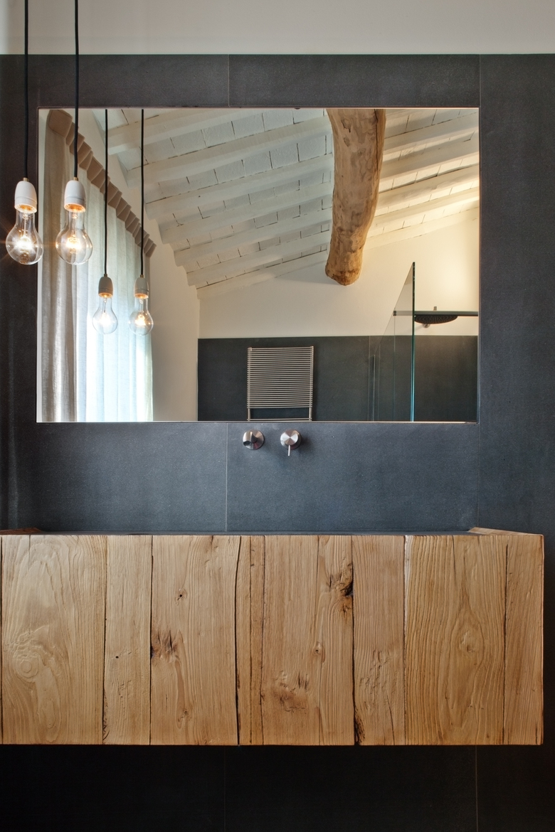 Perseguendo tale obiettivo, e nel pieno rispetto delle caratteristiche tipiche, i materiali e gli elementi utilizzati sono stati rivisti in chiave contemporanea, impiegando a tal fine le tecniche di costruzione ritenute più appropriate, assicurando così il raggiungimento del miglior risultato possibile. All’interno del casale, si è dunque provveduto ad applicare manualmente e con le tradizionali spatole e spugne, intonaci a base di calce naturale evidenziando la struttura irregolare delle pareti dovuta dall’utilizzo di materiali quali il sasso e la pietra. Il recupero delle travi e delle tavelle già presenti