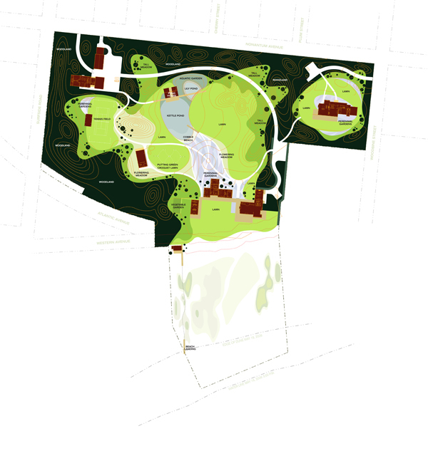 In collaboration with Piet Oudolf, field operations designed and oversaw installation of a private residential garden on the Atlantic coast of Nantucket Island. Located in a spectacular dune setting with magnificent ocean views, the gardens consist of sweeping lawns, perennial gardens, extensive flowering meadows, a natural-turf tennis field, a swimming pond and restored native woodlands - all cast over a dramatically sculpted topography.