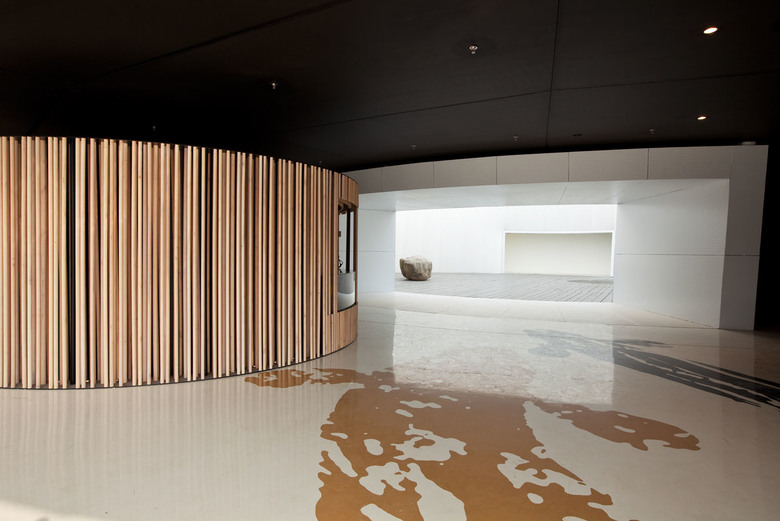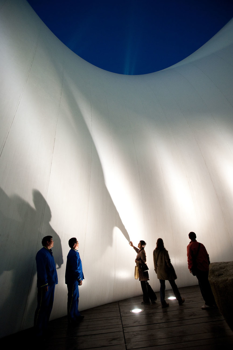 The Finnish pavilion at Shanghai World Expo 2010 is called “Kirnu” (“Giant’s Kettle”). Kirnu won first prize among 104 entries in the design competition. The Finnish pavilion at Shanghai World Expo 2010 portrays our country in microcosm, presenting both Finland and its society to the world. The sculptural architecture of the pavilion is aimed at creating visions of such themes as freedom, creativity, and innovation. The pavilion emerges like an island from the surface of the water. At the heart of the pavilion is the miniature city’s center and forum for events, the “Giant’s Kettle,” where ideas can meet and mix. The architecture of Kirnu received its inspiration from nature. Its architect’s creative work resembles that of a cook, using the raw ingredients provided by nature to create something new. The concept of the pavilion is that of an island. Its form language is free without symmetry, as is a stone’s. The pavilion is surrounded by a mirror of water, and its surface is covered with shingles resembling fish scales. The entrance is small and shady; the inner atrium opens toward the sky and the clouds. As does nature itself, the pavilion offers a quiet refuge from busy city life for anyone who wishes to enter. The visitor walks on a smooth bridge towards the main entrance, whose fabric surfaces form an inviting portal to the pavilion. A gently sloping ramp ascends within the thick walls of Kirnu toward the exhibition hall, a high space that winds around the atrium. After the exhibition hall, the ramp continues downward to the exit, shop, and restaurant area. Finally, entertainment, meeting, and staff facilities are found on the third floor.