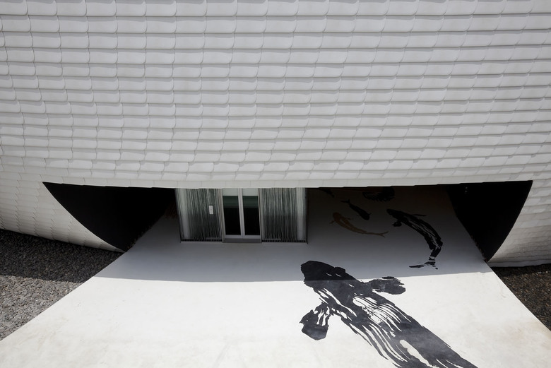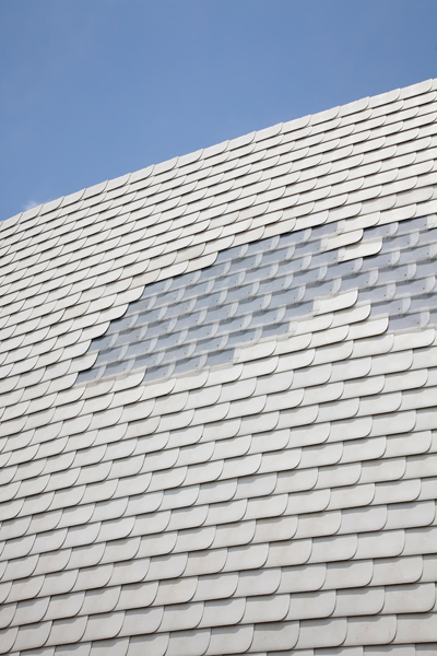 The pavilion is a laboratory for sustainable building, presenting Finnish solutions for future urban construction and keeping to the principles of sustainable development. The most visible example of this is the building’s facade, which is surfaced in scale-like shingles. These scales are made of a mixture of paper and plastic, which is a recycled product of industry.